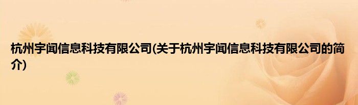 本文关于杭州宇闻信息科技有限公司的简介就讲解完毕,希望对大家有所帮助。