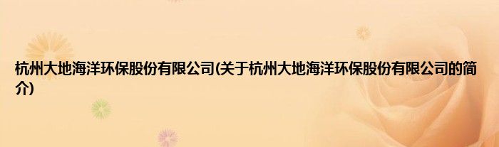 大家好,杭州大地海洋环保股份有限公司,关于杭州大地海洋环保股份有限公司的简介很多人还不知道,现在让我们一起来看看吧!
