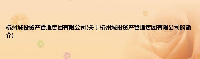 本文关于杭州城投资产管理集团有限公司的简介就讲解完毕,希望对大家有所帮助。
