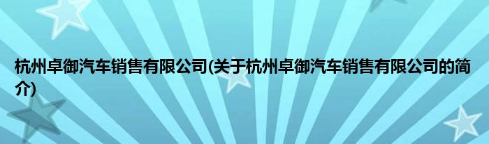 本文关于杭州卓御汽车销售有限公司的简介就讲解完毕,希望对大家有所帮助。