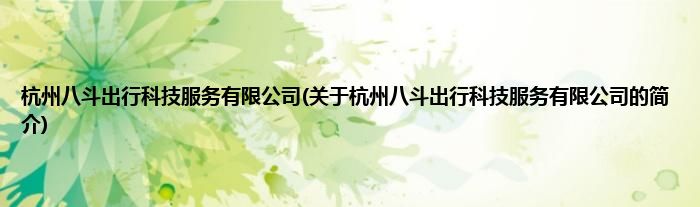 本文关于杭州八斗出行科技服务有限公司的简介就讲解完毕,希望对大家有所帮助。
