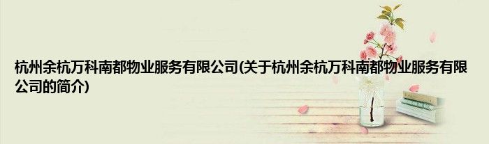 杭州余杭万科南都物业服务有限公司(关于杭州余杭万科南都物业服务有限公司的简介)