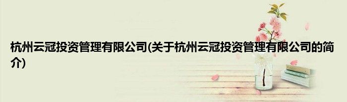 杭州云冠投资管理有限公司(关于杭州云冠投资管理有限公司的简介)