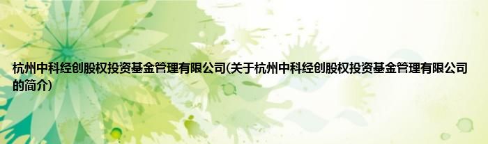 本文关于杭州中科经创股权投资基金管理有限公司的简介就讲解完毕,希望对大家有所帮助。