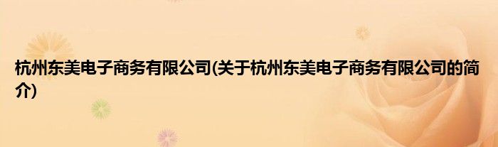 本文关于杭州东美电子商务有限公司的简介就讲解完毕,希望对大家有所帮助。