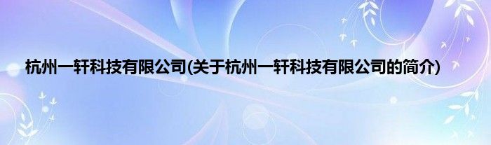 本文关于杭州一轩科技有限公司的简介就讲解完毕,希望对大家有所帮助。