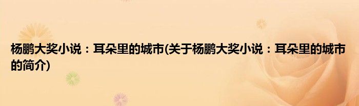 本文关于杨鹏大奖小说:耳朵里的城市的简介就讲解完毕,希望对大家有所帮助。