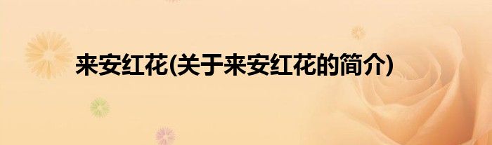 本文关于来安红花的简介就讲解完毕,希望对大家有所帮助。