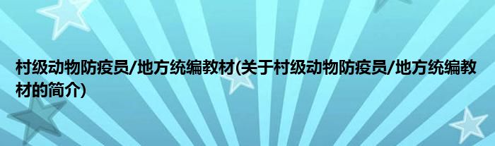 本文关于村级动物防疫员/地方统编教材的简介就讲解完毕,希望对大家有所帮助。