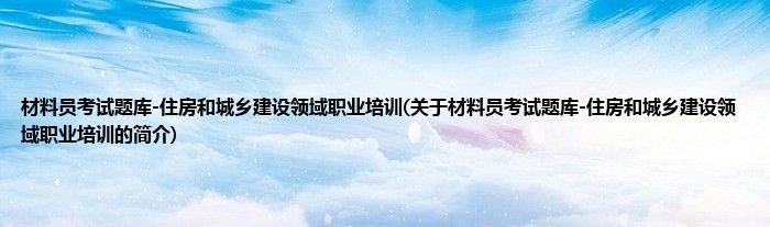 大家好,材料员考试题库-住房和城乡建设领域职业培训,关于材料员考试题库-住房和城乡建设领域职业培训的简介很多人还不知道,现在让我们一起来看看吧!