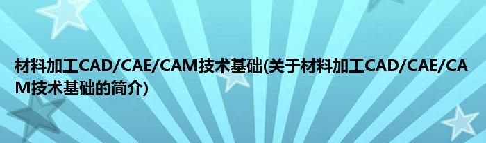大家好,材料加工CAD/CAE/CAM技术基础,关于材料加工CAD/CAE/CAM技术基础的简介很多人还不知道,现在让我们一起来看看吧!