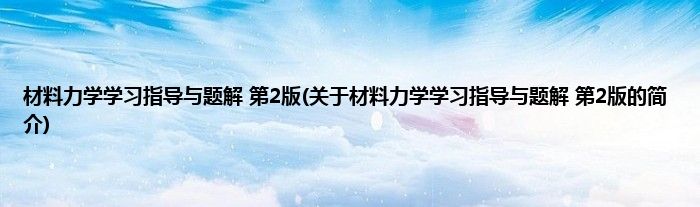 本文关于材料力学学习指导与题解 第2版的简介就讲解完毕,希望对大家有所帮助。