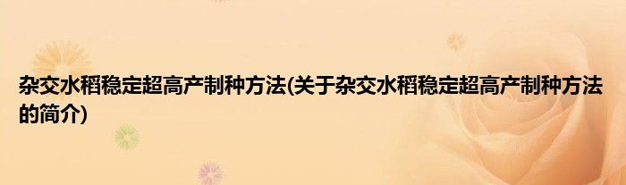 大家好,杂交水稻稳定超高产制种方法,关于杂交水稻稳定超高产制种方法的简介很多人还不知道,现在让我们一起来看看吧!