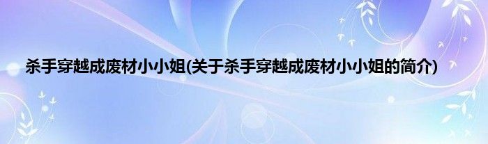 本文关于杀手穿越成废材小小姐的简介就讲解完毕,希望对大家有所帮助。