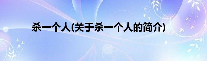 本文关于杀一个人的简介就讲解完毕,希望对大家有所帮助。