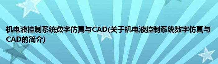 本文关于机电液控制系统数字仿真与CAD的简介就讲解完毕,希望对大家有所帮助。