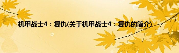 大家好,机甲战士4:复仇,关于机甲战士4:复仇的简介很多人还不知道,现在让我们一起来看看吧!