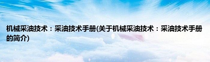 本文关于机械采油技术:采油技术手册的简介就讲解完毕,希望对大家有所帮助。