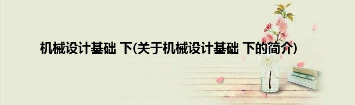 本文关于机械设计基础 下的简介就讲解完毕,希望对大家有所帮助。