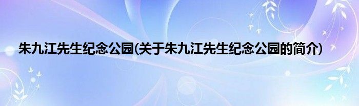 本文关于朱九江先生纪念公园的简介就讲解完毕,希望对大家有所帮助。