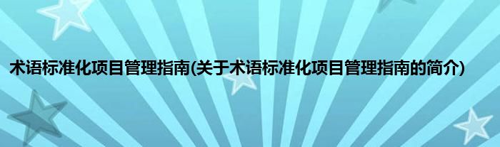 本文关于术语标准化项目管理指南的简介就讲解完毕,希望对大家有所帮助。