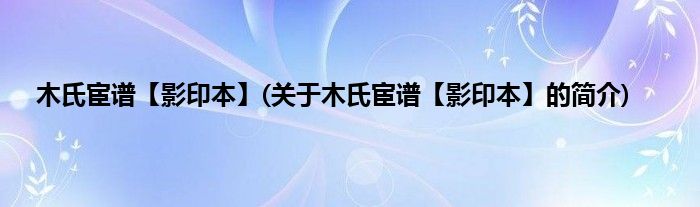 本文关于木氏宦谱【影印本】的简介就讲解完毕,希望对大家有所帮助。