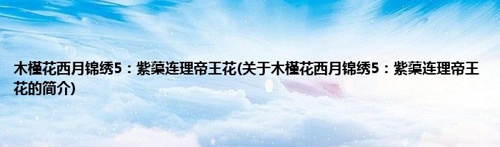 大家好,木槿花西月锦绣5:紫蕖连理帝王花,关于木槿花西月锦绣5:紫蕖连理帝王花的简介很多人还不知道,现在让我们一起来看看吧!