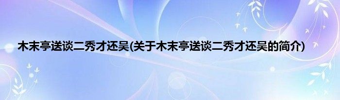 本文关于木末亭送谈二秀才还吴的简介就讲解完毕,希望对大家有所帮助。