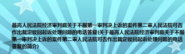 本文关于最高人民法院经济审判庭关于不服第一审判决上诉的案件第二审人民法院可否作出裁定驳回起诉处理问题的电话答复的简介就讲解完毕,希望对大家有所帮助。