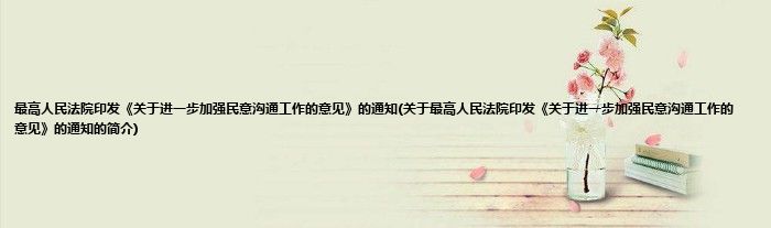 本文关于最高人民法院印发《关于进一步加强民意沟通工作的意见》的通知的简介就讲解完毕,希望对大家有所帮助。