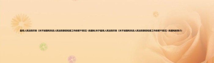 最高人民法院印发《关于加强和改进人民法院督促检查工作的若干意见》的通知(关于最高人民法院印发《关于加强和改进人民法院督促检查工作的若干意见》的通知的简介)