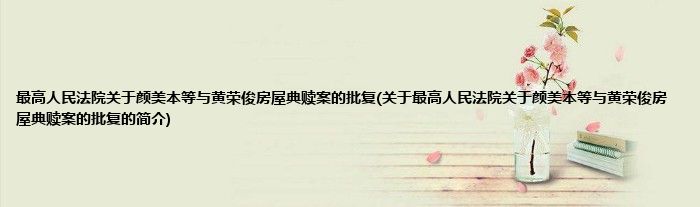 本文关于最高人民法院关于颜美本等与黄荣俊房屋典赎案的批复的简介就讲解完毕,希望对大家有所帮助。