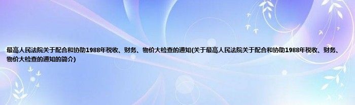 最高人民法院关于配合和协助1988年税收、财务、物价大检查的通知(关于最高人民法院关于配合和协助1988年税收、财务、物价大检查的通知的简介)