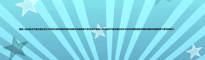 本文关于最高人民法院关于建立健全诉讼与非诉讼相衔接的矛盾纠纷解决机制的若干意见的简介就讲解完毕,希望对大家有所帮助。
