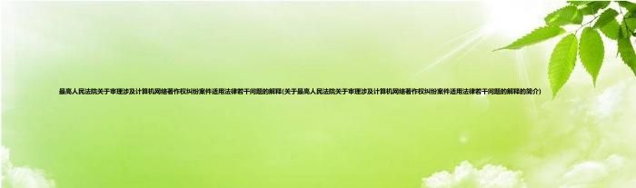 最高人民法院关于审理涉及计算机网络著作权纠纷案件适用法律若干问题的解释(关于最高人民法院关于审理涉及计算机网络著作权纠纷案件适用法律若干问题的解释的简介)
