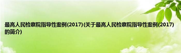 本文关于最高人民检察院指导性案例(2017)的简介就讲解完毕,希望对大家有所帮助。