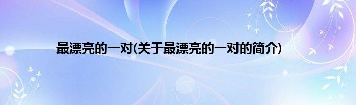 大家好,最漂亮的一对,关于最漂亮的一对的简介很多人还不知道,现在让我们一起来看看吧!