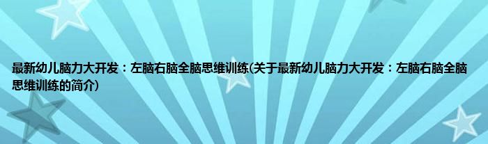最新幼儿脑力大开发:左脑右脑全脑思维训练(关于最新幼儿脑力大开发:左脑右脑全脑思维训练的简介)