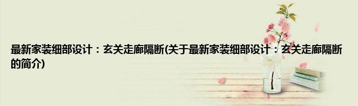 本文关于最新家装细部设计:玄关走廊隔断的简介就讲解完毕,希望对大家有所帮助。