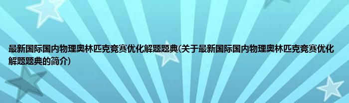 本文关于最新国际国内物理奥林匹克竞赛优化解题题典的简介就讲解完毕,希望对大家有所帮助。
