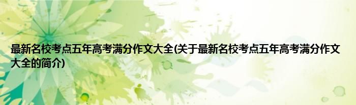 本文关于最新名校考点五年高考满分作文大全的简介就讲解完毕,希望对大家有所帮助。