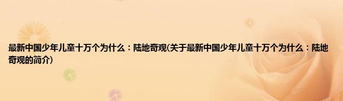本文关于最新中国少年儿童十万个为什么:陆地奇观的简介就讲解完毕,希望对大家有所帮助。