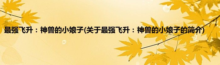 本文关于最强飞升:神兽的小娘子的简介就讲解完毕,希望对大家有所帮助。