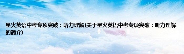 本文关于星火英语中考专项突破:听力理解的简介就讲解完毕,希望对大家有所帮助。