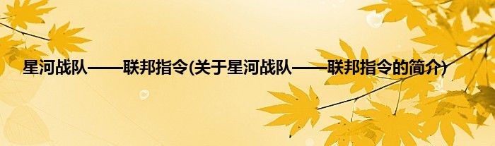 本文关于星河战队——联邦指令的简介就讲解完毕,希望对大家有所帮助。