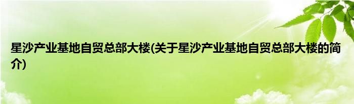 星沙产业基地自贸总部大楼(关于星沙产业基地自贸总部大楼的简介)