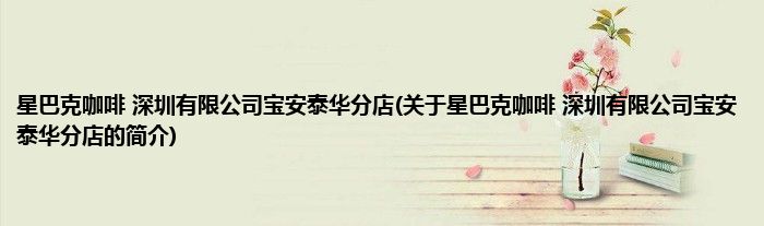 本文关于星巴克咖啡 深圳有限公司宝安泰华分店的简介就讲解完毕,希望对大家有所帮助。