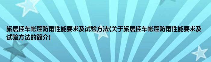 本文关于旅居挂车帐篷防雨性能要求及试验方法的简介就讲解完毕,希望对大家有所帮助。