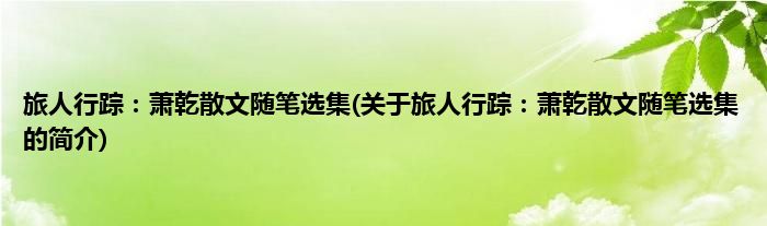 本文关于旅人行踪:萧乾散文随笔选集的简介就讲解完毕,希望对大家有所帮助。