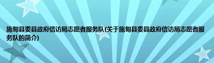 本文关于施甸县委县政府信访局志愿者服务队的简介就讲解完毕,希望对大家有所帮助。